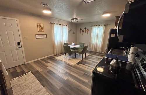 A cozy, warm space you get to make your home while you stay. Packed with all of the necessities and many extra amenities, enjoy a cup of coffee in the morning or a cup of tea in the evening and relax in your home away from home!