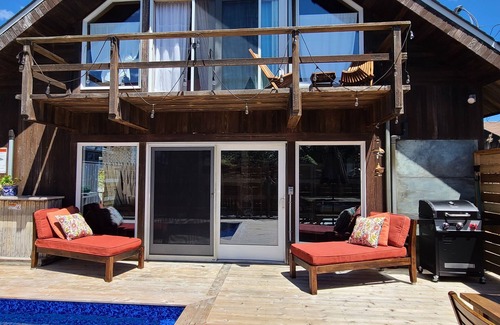 Outside offers a nice sized deck with plenty of seating and BBQ, a outdoor shower and an 8x14 saltwater pool.