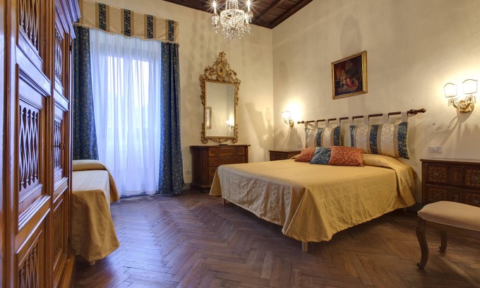 Elegant apartment, for the most part frescoed, with original 18th century frescoes. Located in the historic center, 2 steps between Piazza Santo Spirito and Piazza Pitti and a stone's throw from Ponte Vecchio and Uffizi. Strategic position that allows you to move on foot and see all the attractions of Florence. With terrace equipped with tables and chairs, where you can eat and relax.