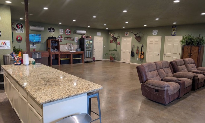 Great for family fun or a romantic getaway. Incredible view with access to pool/hot tub area. Watch a beautiful sunrise from the large porch and a sunset from the pool cabana area. This barn is the perfect place for a family get together. It has a full kitchen and multiple outdoor cooking options including two grills (one at pool), outdoor griddle or a large smoker. We can set up the living area to be completely open or with multiple tables and chairs. Get back to nature and relax in peace.4 bedrooms including 2 queen beds and 2 bunk beds, this property is perfect for families or groups of friends looking for a phenomenal getaway. The 2 bathrooms are equipped with all the essentials, including a hairdryer and a shower. Our place is equipped for both long or short stays to make your holiday one to remember. I am in the draft beer business. Want to bring a keg of beer (commercial or your own homebrew)? We can make space for it in one of our kegerators.