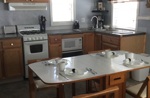 Everything you need for outdoor fun. Gas grill and lawn chairs, and picnic table also. Just bring you bug spray and beach towels.