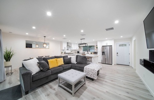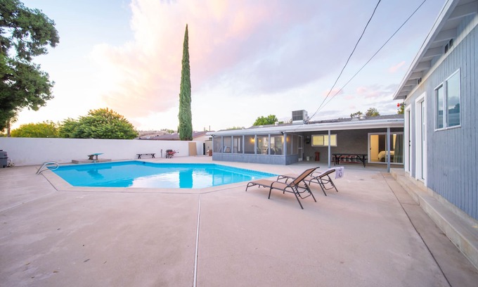 Beautifully upgraded Pool home suitable for up to 8 people equipped with all modern amenities, full stocked kitchen, WIFI, Smart TV's. Large Backyard, with a cover patio, and sunroom. Great for unwinding at the end of the day. BBQ with family and friends pool side. Great quite neighborhood. Short drive to Six Flags Magic Mountain, and Six Flags Hurricane Harbor, Canyon Country Hikes and Natural Preserves, Pulchella Winery, and Castaic Lake