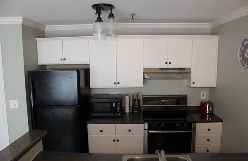 Sit on the balcony and enjoy the fresh air in the morning and play at the lake all day long. You can also come watch the leaves change in the fall and ski in the winter! Wind down your evening by watching the sunset, cooking in the kitchen with your friends and family or dining at Myrna's, the delicious Italian restaurant, downstairs. There is a supermarket right down the block to buy groceries and treats.