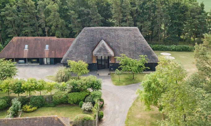 Great Higham Barn: Sleeps 18 (+ a further 8 with fee) 7 bedrooms, 1 family bathroom, 4 en suite bath or shower rooms and 1 WC. Outside there is a private garden with large patio area and seating and private off road parking for several cars on the driveway or undercover. Use of shared outdoor swimming pool and tennis courts. A further 8 guests can stay for an added supplement of £475 (on 2 sofa beds and 4 futon beds in reception rooms)