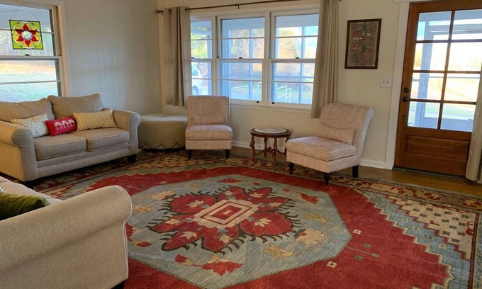 This recently renovated home features comfortable sleeping arrangements, kid-friendly amenities, and high-speed Wi-Fi—an uncommon luxury in the area. With a large field in front and a spacious backyard, there are plenty of outdoor spaces for guests to relax and mingle. The fire ring is perfect for evening gatherings under the stars, creating intimate moments with family and friends. Additionally, parking is abundant, accommodating multiple vehicles easily, ideal for those attending nearby celebrations at venues like Chattooga Belle Farm or The Ridge at Summit Farms.