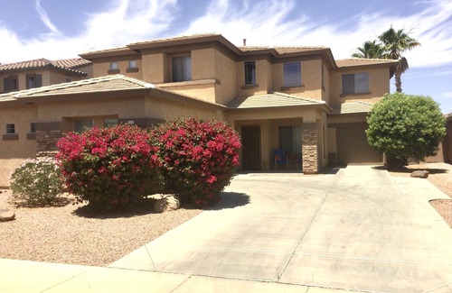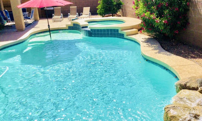 The perfect home for a family vacation as it sleeps up to 8 guests, has two living rooms, fully stocked kitchen, 2.5 baths and a private, backyard pool (can be heated for additional fee) with covered patio and bbq grill. Also a great property for the weekend getaway trips because of its excellent location to all the necessary amenities and the convenience of numerous nearby activities, such as World Wildlife Zoo, tennis, golf, MLB stadiums, Surprise recreational park, fishing, hiking, biking, bowling, movie theater, restaurants etc…