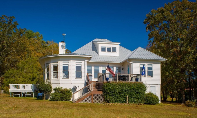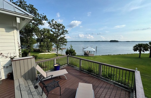 Excellent view, private dock with deep water, located adjacent to Billy Dreher Island State Park, one of the best fishing areas in the Southeast US. Big water views. Three ensuite bedrooms all on different levels for privacy. Well appointed kitchen. Gas grill on patio. Beautiful views of the big water and sunsets. Everything you need for a relaxing vacation. 5 star. Great for kids. Super location for fishing tournaments. Eco tourism, water sports, pontoon rental available. Whole house automatic generator insures power full time.