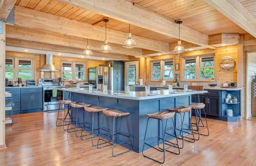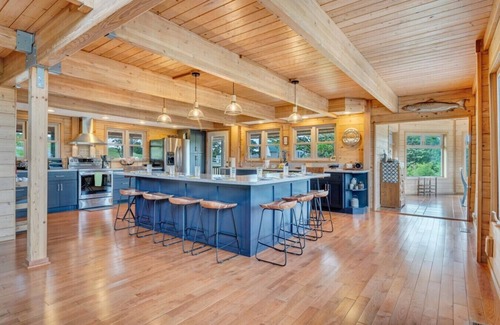 Every amenity you could want is at your fingertips: high-speed wireless internet for remote work or streaming, central heat and air conditioning for year-round comfort, two laundry areas to keep dock towels fresh, and flat-screen TVs to keep everyone entertained. And with two full kitchens, several living areas, and generous desk spaces, there's room for everyone to spread out, relax, and enjoy.
