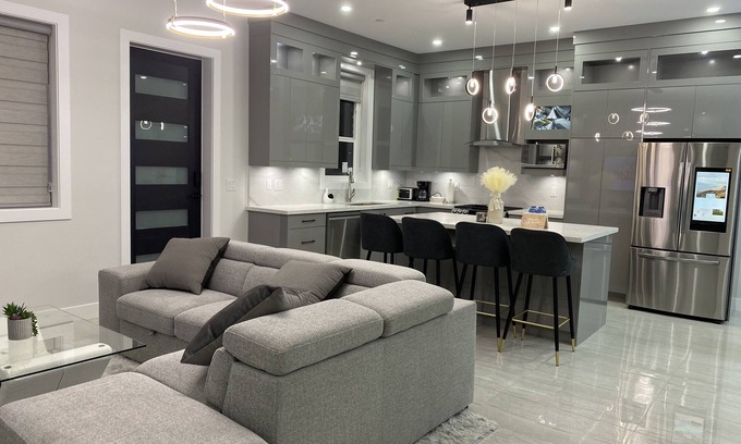 Brand new house in two levels of the house smart house camera system/ alarm system, with luxury appliances/ AC and heathy radiant heat for kids. LED leds, comfortable beds, fireplace, enjoy the green back yard with garage parking. Modern decoration in prime location PNE. Closes to downtown , 10’ minutes to cruise ship terminal in downtown Vancouver, highway 1 to Whistler, mountain for skiing, Capilano Suspension Bridge, Squamish. This house offer 5 beds for up to 10 adults and 1 baby travel crip, free garage parking, big backyard, mountain view and city view.