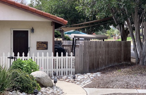 This is a spacious, well lit, convenient Bungalow. There is a King Bed in the bedroom with a Queen Murphy bed in the unit. The kitchen is new with stainless steel appliances. There are 4 skylights with great natural lighting and a whole house ventilation fan in addition to the air conditioning, There are two large flat screen TVs and free WiFi. There is a large tree shaded patio with table, chairs, swing and a grill for your enjoyment. There is a great work area with a large desk and shelves for easy workability.