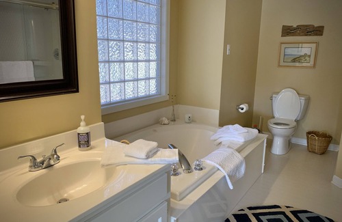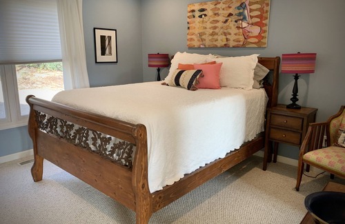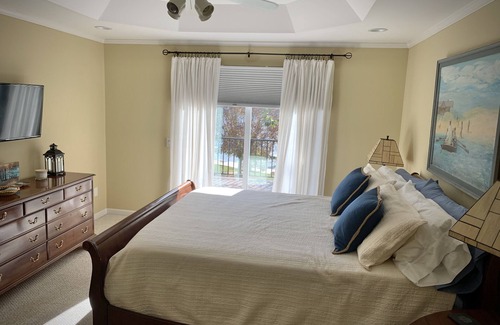 Whether you are in the open living room area, sitting at the table or breakfast bar in the full newly remodeled kitchen, you can enjoy a fantastic view of the lake. Off the kitchen there is a large dining table that seats up to 10 people for family dinners. The living area features ample seating and a large 52" flatscreen TV. Free Wi-Fi is provided. The Master/California King Bedroom and private en suite bathroom is located on the main floor boasting an incredible view of the lake and a large flat screen TV. A second Guest Room/Queen bedroom and full bathroom is also located on the main level.