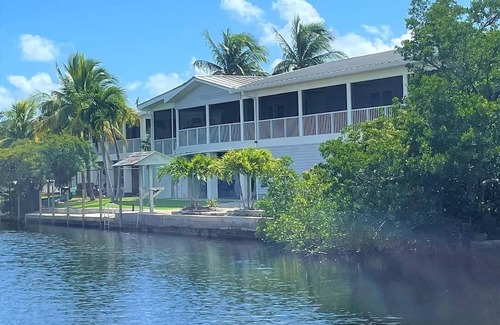 Quiet, secluded Keys house with a pool. Ideal for larger groups of friends and family's. Equal distance to Marathon and Key West. Larger wrap around screen porch. Deep water canal , easy boat ride to golf and ocean access. Watch the stars at night. Bring you toys and boat. Big deep water dock , can bring up to 33 foot boat. You can also fish off the dock. This area has lots wildlife and deer. Come enjoy and relax