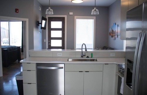 Treat yourself to a luxury stay in this gorgeous condo in the trendiest part of Nashville. The condo boasts comfortable furnishings, a sleek full kitchen, a queen bed, a sleeper sofa, and much more. Make yourself at home in the living space detailed with a large smart TV and a sleeper sofa. Enjoy the option to cook something delicious up in the well-equipped kitchen with full-size appliances and a coffee maker. Wind down after a night on the town as you sink into the incredibly comfortable bed or utilize the sleeper sofa for up to 4 guests. One full bathroom glistens with modern finishes with a combination tub/shower and luxurious towels. In-unit amenities include complimentary Wi-Fi, SmartTV and a washer/dryer. One parking space is included and for additional vehicles, street parking is available.