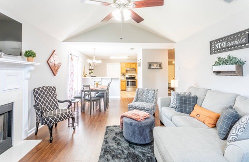 Feel right at home in this beautiful one-story home in a quiet & safe neighborhood. A King Bed in each bedroom makes for a comfy stay and a sofa bed in the living room accommodates a couple extra guests. An open floor plan gives you plenty of space and the kitchen has everything you'll need for your cooking/eating pleasure. The home is complete with high speed internet, 2-50" TV's and 1-55" TV. There's a spacious laundry room off the kitchen with a high capacity washer and dryer. This lovely home is located 10 minutes from the airport, 5 minutes to the Rez, 10-15 minutes to Jackson and 4 minutes to the Dogwood center which has a plethora of restaurants and shopping. Ideal for business travel or families.
