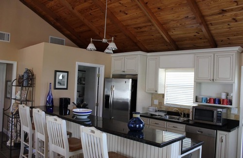 This charming island home on a deep-water canal features high-beamed ceilings and a 'loft.' The walk-around deck, open floor plan, and kitchen designed for entertaining make this home an excellent choice for a carefree vacation. The home is newly furnished and redecorated and has two spacious bedrooms each with a private bath. The home is equipped with High Speed Wireless Internet Access.