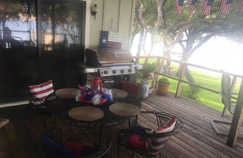 Beautiful 3 bedroom (2 king, 2 queen, 1 queen fold out couch, and 1 blow up mattress if needed), 2 bath located on one of the best lake properties on Lake Brownwood. Enjoy the 367 feet of waterfront. Fishing off the boat dock is great. Build a fire in the waters edge fire pit and enjoy s’mores while overlooking the lake. Location, location, location!!! In walking distance to public boat ramp and less than a 5 minute boat or drive to the Wild Duck Marina. Enjoy playing golf? Well bring the clubs. A beautiful golf course is close as well. Need to run to town, no problem. Home is located on the same side of the lake as the town of Brownwood with less than a 10 minute drive. Come and enjoy our little piece of lake heaven.