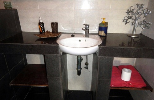 One room has a king sized bed and a the other has a queen sized bed and single bed. Each room has a large bathroom with hot water shower. Air conditioning, ceiling fan, 32" flat screen TV (with international channels / DVD player) and teak wardrobe (with safety box) is provided in each room. The rooms both have granite floors, high ceilings and Balinese decorative details. A hot water kettle and free coffee/tea is provided.