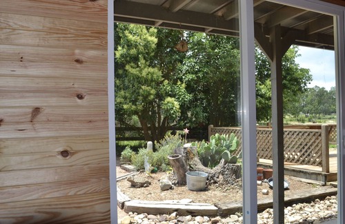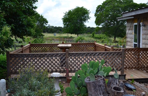 Hill country setting that offers a fenced yard for a pet friendly environment. It also is situated for your privacy and nice sunset views. There is a full kitchen that is ready for your own culinary creations, cookware and dishes provided, microwave, toaster, outside grill. Large bathroom has a jacuzzi tub that has a hand held shower feature. King sized Corsicana memory foam mattress. has a privacy fence and offers your own area of space.