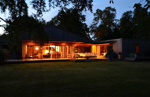 The house is ideal for multi generational gatherings, retreats, or just groups of friends getting together. Perfect for all ages, and all mobilities. A fine example of mid century modern building, lots of open plan living, with great views over the surrounding countryside.