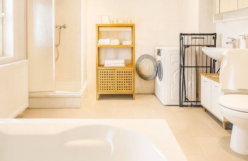 Feel free to prepare a home-cooked meal with the stovetop, dishwasher, and microwave. Bathroom amenities include a hair dryer, towels, and toilet paper. Other amenities include bed sheets, an ironing board, and heating.