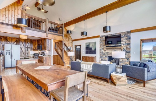 Our staff loves this one! One of our most popular rental homes, Base Camp is open for business and sure to delight vacationers young and old. Upstairs or downstairs, beautiful views are provided on every floor. Base Camp is plenty "cushy" with king beds only, lots of TV's, WIFI, and a wet bar. Step outside to enjoy the firepit, gas grill and plenty more views! The well-equipped kitchen is sure to satisfy even the fussiest chef and the game room with air hockey, shuffleboard and a large TV will keep the gang busy while the kitchen magic happens! Base Camp is walking distance to a delightful petting zoo and horseback riding at Mountain Trail Rides! It is a quick drive to Canaan Resort's pristine golf course and outdoor pool for summer fun. In winter you cannot lodge any closer to White Grass or the slopes at Canaan and it is a short, easy drive to Timberline Mountain! Plan early. Base Camp is sure to become your favorite! Well behaved dogs are welcome with an additional fee.