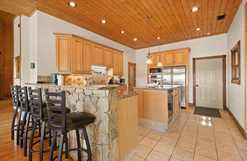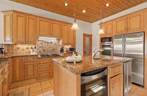 This luxury mountain cabin is the peak mountain experience, a nicely finished, upscale mountain cabin featuring five (5) sleeping rooms each with an ensuite bath and two (2) half baths. This home has a chef's kitchen with granite countertops, stainless steel appliances, a wine cooler, and an ice maker. Enjoy three separate living areas for large groups to stretch out.
