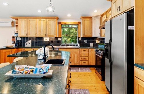 Castaway is a spacious waterfront home located at Triton Cove in Hood Canal and is a perfect base camp to explore surrounding areas. This family friendly house not only has gorgeous views of Hood Canal, but it also has its own private beach with kayaks and a paddle board. It is equipped with convenient features such as air conditioning, propane grill, washer and dryer, luxurious amenities, and ample space to spread out. Relax with the whole family at this serene oasis.