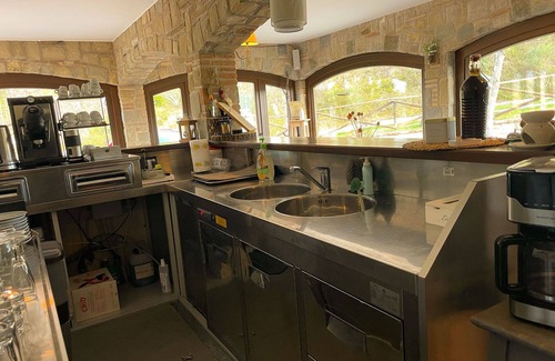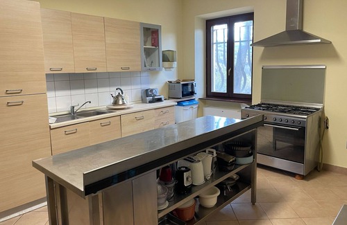 On the same floor you will find a big kitchen equipped with microwave, cob, oven, dishwasher, slicer, kitchen robot and all the basic utensils as well as ingredients (olive oil, vinegar, salt, herbs and sugar) to prepare a nice meal.
