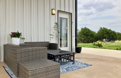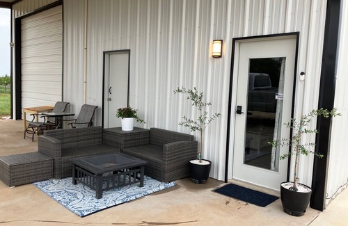 This Greek themed bungalow in Mineral Wells is just what you need for a relaxing getaway. Settled in the quiet of the country, 150 ft above 281 & 254 offering great views, yet close enough to enjoy shopping, parks, PK Lake, the Brazos river, eateries such as the Wildcatter steakhouse, famous Chelf Bulls 2nd Bar & Kitchen, Rickhouse Brewing Co local bakeries, the Blind Pig speakeasy and more! This 2-bd, 1.5 bath home features a well equipped kitchen, W/D, quality king and queen bed for your comfort! With amenities such as WiFi, AC, a fire pit and outdoor grill guests can unwind comfortably! A large pond at the lower end of the property (not yet stocked) cows, outdoor cats and guinea fowl provide the on the farm feel for your country experience!