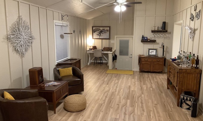 3 driveways for parking boats or RV's, large fully fenced 1/2 acre property for pets to run and play! Two public boat ramps located within 3.3 miles. Separate room for cleaning gear (double utility sinks), rigging, crafting, buffets or a 3rd sleeping quarter utilizing couch or self inflating bed, (provided) if needed. Relaxing outdoor area with gas fire pit and grill that is perfect for winding down after a beautiful day on the lake. Sleeps 6 (utilizing trundle bed), can accommodate 8 by request if sleeping in common area is desired, ($50 surcharge per person per night if more than 4 are staying). Central A/C system with UV/LED whole house sanitizing unit.