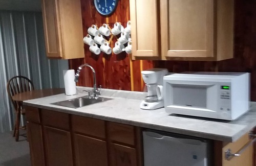 Green Cedar Lodging is an updated and remodeled shed house located just 2 blocks off main street. Platte offers resturants, coffee shops, grocery store, gas stations, churches, quaint shopping and nice parks within minutes. Also we are located 15 minutes away from the beautiful Lake Frances Case on the Missouri River, famous for fabulous fishing, water sports, and state parks. New outdoor aquatic center 4 blocks away. Lyric theater shows movies on the weekends. Our bedrooms, bathroom and laundry are located up stairs in what we call The Loft. There is a fully equipped eat in kitchen on the main floor. We have a small sitting area with large screen TV there also. The large garage is great for games, socializing and pets. . Outdoor amenities include grill and patio furniture. There is off-street parking for boats and trailers. Accessible to electric outlet for plugging in boats. Owners live on sight, but do not share the guests entrance, or living areas but are available if needed. Quiet hours 11 pm - 6 am. Will consider a discount for 2 or less guests with no pets. Inquiries welcome.