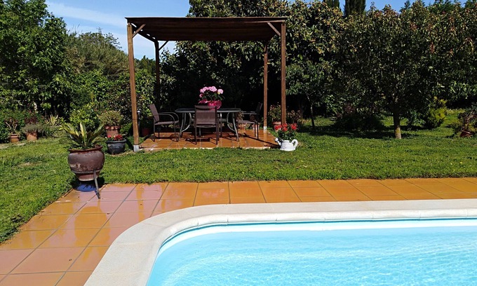 Apartment with large garden, pool and barbecue. It is ideal for a couple, or a family with children. It has a double room, a double, and a bathroom. There is possibility of two extra beds in a small loft. Kitchen-dining room ideal for four people. The apartment accessible from the garden.