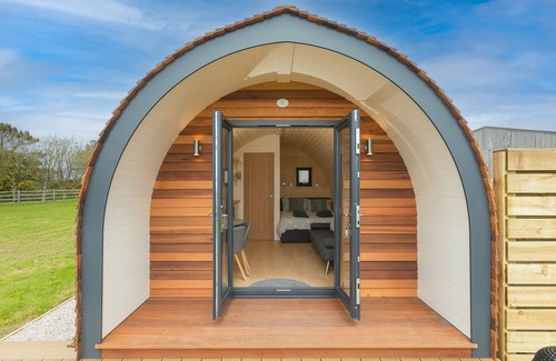Amenities: Gas central heating with underfloor heating. Electric hob, combi microwave, Airfryer, fridge. Smart TV, WiFi. Fuel, power, and starter pack for wood fired hot tub inc. in rent. Bed linen and towels inc. in rent. Ample parking. Large enclosed garden with lawn, decking, gravelled area, wood fired hot tub, barbecue, and furniture. Sorry, no pets and no smoking. Shop and pub 0.8 miles, beach 2.3 miles. Note: There is a step up to the decking, and the pod is located on a platform, please take care