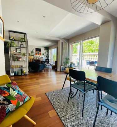 This apartment offers free private parking and free Wifi. Offering a terrace with garden views, this apartment also has a flat-screen TV, a well-equipped kitchen with a dishwasher, an oven, and a microwave, as well as 2 bathrooms with a bath and a hair dryer. The property has an outdoor dining area. Lille Airport is 5 miles away.