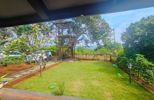 Escape to serenity at Green Hills Hideaway, a luxurious 2 BHK villa just 70 km from Pune and 210 km from Mumbai. Ideal for 4-5 guests, our resort bungalow offers stunning mountain and lake views. Relax in the spacious living area, enjoy in-house activities, and capture Sahyadri's beauty from our watchtower. With attached and common washrooms, storage, and lockers, your comfort and security are our priority. Book your stay now and create unforgettable memories in this tranquil paradise.