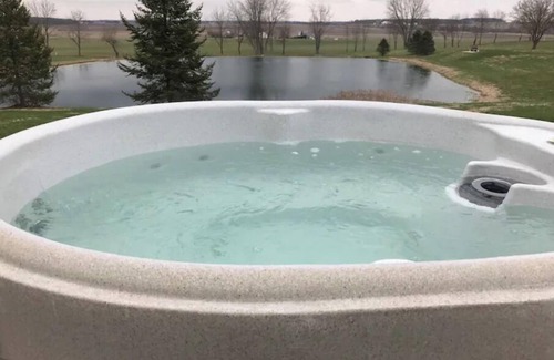 Located on 66 acres of rolling farmland and wooded countryside, this restored log cabin - built circa 1855 - is rustic but not the least bit primitive. A massive stone fireplace makes relaxing in the winter cozy. Enjoy your morning coffee along with a beautiful view of Ohio farmland from the screened-in porch. Jump into the outdoor shower or hot tub after a day of hiking or shopping in nearby Yellow Springs. Centrally located, the Cabin is just 20 minutes from Dayton and 50 minutes from Columbus.
