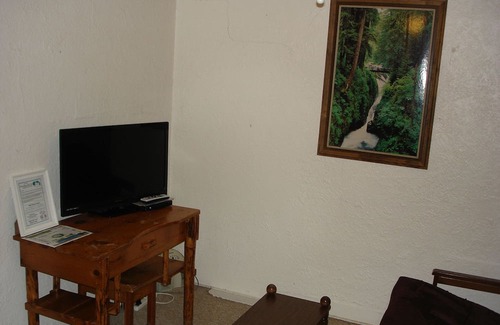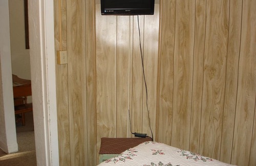 This cozy cottage has a separate bedroom with a double bed and it's own TV. The bathroom has a shower. In the living room you will find a double size futon and TV/DVD. The kitchen is small but fully equipped.