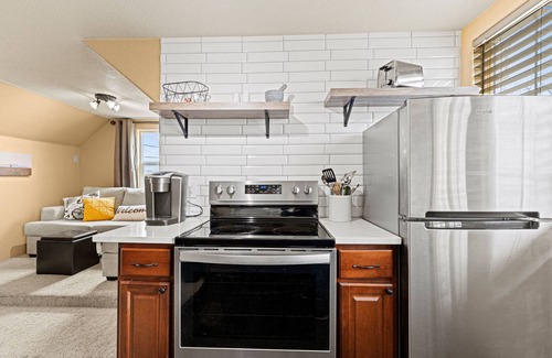 Our kitchen is fully equipped to make your stay as comfortable and convenient as possible. You'll have access to a refrigerator, stove, oven, blender, Keurig coffee maker, microwave, toaster, and a crock pot. Feel free to help yourself to any food or drinks stored in the refrigerator or kitchen cabinets. Underneath the upstairs TV cabinet, you'll find additional plates, bowls, serving ware, placemats and dish towels.
