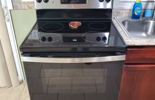 Relax in the living room, where a Fire TV with popular streaming apps is mounted to extend, tilt, and be viewed from any room except the bathroom. The fully stocked kitchen has all the essentials for dining in, and the laundry room includes a washer and dryer for your convenience.