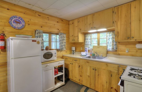Enjoy beautiful views across the cove, and a shared beach just steps from your porch! This cottage is the last in the line, and offers a bit more privacy and private steps into the water. There is about 1000+ feet to walk from where you park at this cottage to the cottage. It is flat, but there is a walk.