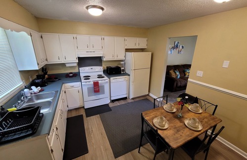 Discover the charm of Greenville in this beautifully appointed 2-bedroom apartment, perfect for families, groups, or couples. The space features 3 comfortable queen beds, ensuring a restful stay for all guests. Relax in the cozy living area after a day of exploring, or whip up a meal in the fully equipped kitchen, complete with modern appliances.