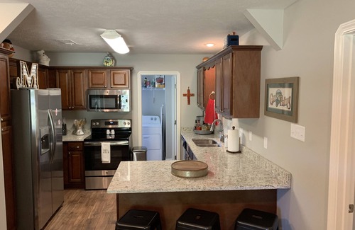 The home features three spacious bedrooms—each equipped with their own large television and DVD player—ideal for relaxation before or after the big day. Guests will enjoy two bathrooms, including an en suite, ensuring convenience during your stay. Gather around the cozy living area, complete with a 70-inch TV, or take advantage of the outdoor spaces featuring a rock fire pit and gas grill for post-wedding celebrations. With luxury linens and a fully equipped kitchen, Greers Ferry Get-A-Way ensures that every detail is taken care of so you can focus on celebrating love.
