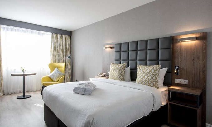 Ideally located 2.5 mi from the NATO Headquarters and a 12-minute drive from Brussels International Airport. Brussels Grand Place is 4.3 mi away and the European District is 2.5 mi from this hotel. A complimentary airport pick-up shuttle service from Brussels International Airport (BRU-Zaventem) is offered Monday to Friday, from 6:30 AM to 10:30 PM, based on availability. Please see conditions in the Fine Print. There is free High-Speed Wi-Fi throughout the hotel. Air-conditioned, each spacious room at the Gresham Belson comes with a flat-screen TV with satellite channels and a mini fridge. All rooms feature a seating area with tea & coffee facilities, luxury bedding and a private private bathroom with free toiletries and a hairdryer. An extensive breakfast buffet is served each morning. Guests can enjoy local beers, spirits, snacks, and dishes dining the Lounge Bar. The hotel is located on a vibrant street corner providing you with convenience stores, cafés, restaurants, banks, and a grocery store. The bus stop across the street offers direct buses to the city center and the European District. Gresham Belson Hotel Brussels provides a secured underground car park (max Height =5.7 feet; 5 feet 8 inches).