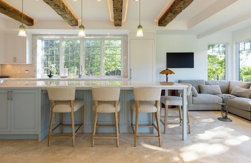All bedrooms have comfy beds with high-quality 100% linen and organic cotton bedding. The fully stocked kitchen features a convection stove, Greenpan cookware, and all of the baking and cooking supplies you will need. The bathrooms are brand new and stocked with Public Goods products for your use.