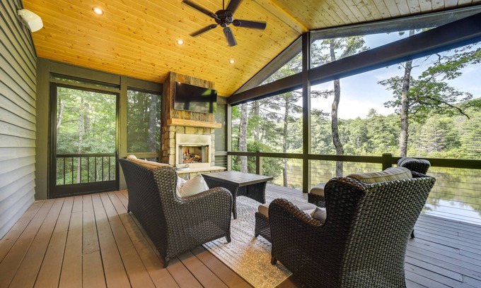 Lakefront Property | Panthertown Access | Covered Porch w/ Smart TV & Fireplace | Wildlife Viewing