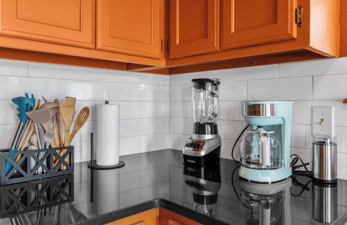 Channel your inner chef in the fully stocked kitchen. You’ll find pots, pans, utensils, dinnerware, and all the little extras you need — whether you’re cooking a homemade breakfast, prepping a picnic for the Gathering Place, or plating takeout from one of Tulsa’s many restaurants.