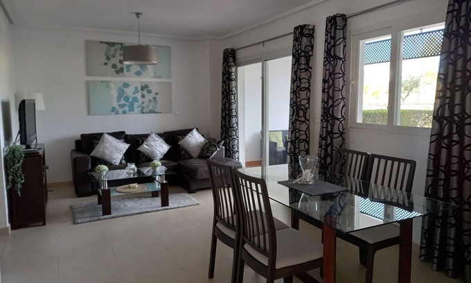 Ground Floor 2 Bedroom Apartment with Terrace, Garden and Pool is located in Sucina. Ground Floor 2 Bedroom Apartment with Terrace, Garden and Pool provides accommodation, featuring Security/Safety, Sports/Activities, Kitchen, among other amenities. This Apartment features Security/Safety, Sports/Activities, Kitchen, to make your stay a comfortable one.