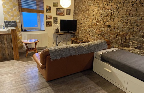 Nestled in Pontorson, this 1-bedroom, 1-bathroom apartment brings it all within your reach. Fans of nature and the outdoors will love being 3 minutes by car from Mont Saint-Michel Bay and 16 minutes from Forêt de Villecartier. You'll easily make the 24-minute drive to Le Rocher Portail or the 17-minute drive to Menhir du Champ-Dolent.