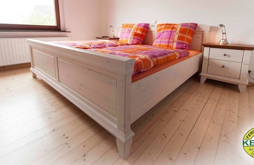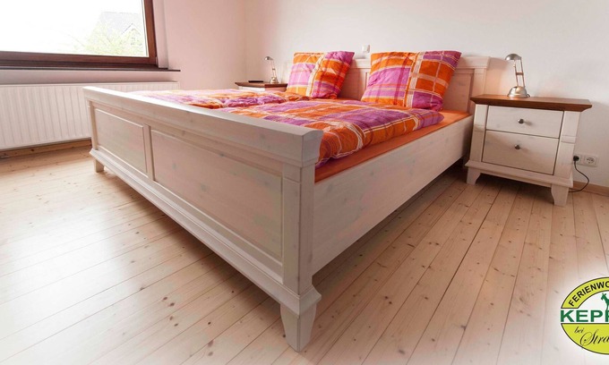 Ground floor The non-smoking apartment on the ground floor offers on an area of 65 square meters up to 4 people ample space; There are two bedrooms, a living-dining room, a kitchen and a bathroom. The living room is equipped with a large flat screen TV, a stereo system and a landline phone. There are two bedrooms, each with a double bed (2 x 2m) available. In each bedroom is a large flat screen TV. In the larger bedroom is a sideboard that can be used as a desk - this is also a refrigerator integrated. The bathroom has a large walk-in shower with rain shower and hand shower. The spacious kitchen is fully equipped with dishwasher, refrigerator, oven, ceramic hob, microwave, coffee maker, toaster, kettle and of course dishes etc.
