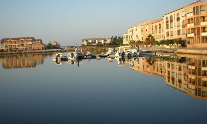 Situated on the waterfront, this welcoming vacation home brings all of Le Barcares within your reach. With the property's convenient onsite parking, you'll be ready to make the quick 12-minute drive to Les Portes du Roussillon Beach or the 5-minute drive to Gulf of Lion.